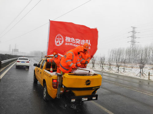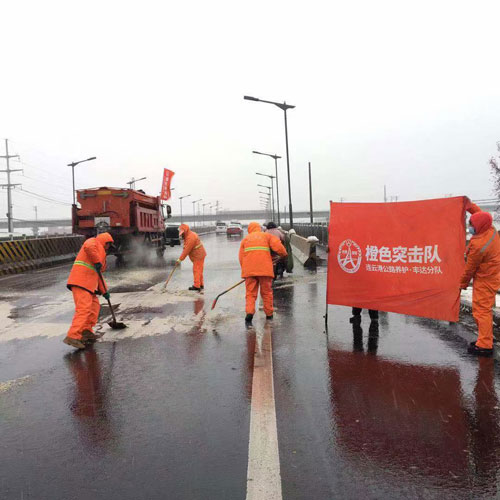 ? ? ? 12月29日,連云港普降中到大雪,連云港豐達公路工程養(yǎng)護有限公司立即啟動除雪防滑應(yīng)急預(yù)案,第一時間展開除雪防滑作業(yè),組織橙色突擊隊和養(yǎng)護人員冒著風(fēng)雪奮戰(zhàn),發(fā)揚不怕苦、不怕累、連續(xù)奮戰(zhàn)的作風(fēng),對G228、G204、G310、G311、S242等管養(yǎng)路段開展路面積雪清除工作,全力做好防滑除雪道路保暢工作,確保人民群眾出行安全。 ?