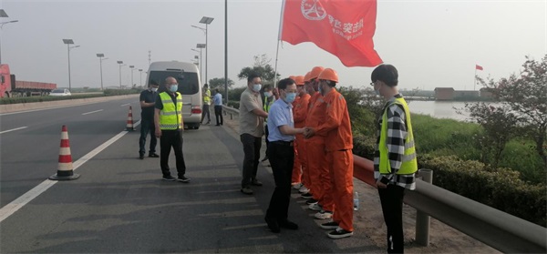 8月10日下午,市公路事業(yè)發(fā)展中心主任王雷、副主任楊耀武一行來到228國道K2915養(yǎng)護(hù)路段看望慰問冒著酷暑、奮戰(zhàn)在一線的豐達(dá)公司“橙色突擊隊”。豐達(dá)公司董事長戴衡、總經(jīng)理王梁洲、工會主席李春堯參加活動。