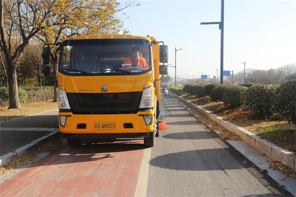 近日,豐達(dá)公司投資60余萬元購買了一臺(tái)智能環(huán)保型快速清掃車,該車采用重汽國(guó)六二類汽車底盤改裝,加裝高壓清洗降塵系統(tǒng)、清水箱、垃圾箱、提升裝置、后掃滾、左右立掃、液壓系統(tǒng)、電控系統(tǒng)等改裝而成。左右立掃采用雙掃盤,增加了清掃寬度。左右立掃分開控制,可實(shí)現(xiàn)左掃、右掃和全掃等不同作業(yè)模式。底盤車中、后部設(shè)有敘指向車運(yùn)行前方的高壓噴頭,實(shí)現(xiàn)對(duì)路面的高壓清洗及降塵。
