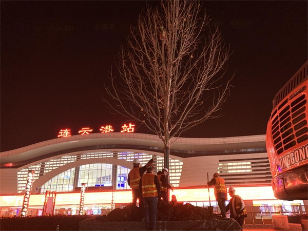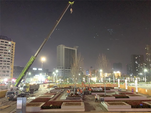 ? ? ? ? ?根據(jù)交通集團(tuán)綜合客運(yùn)樞紐周邊綠化提升工程施工方案和創(chuàng)文創(chuàng)衛(wèi)相關(guān)要求,綜合客運(yùn)樞紐屬于交通要道,客流量較大,工程施工要************不影響旅客通行,保證施工現(xiàn)場(chǎng)安全、整潔。豐達(dá)公司積極采取措施,對(duì)整個(gè)施工現(xiàn)場(chǎng)進(jìn)行封閉圍擋,禁止非施工人員進(jìn)入,確保工程施工安全,并及時(shí)清理現(xiàn)場(chǎng)垃圾,達(dá)到文明施工要求。同時(shí)合理安排施工計(jì)劃,采取錯(cuò)峰作業(yè)、夜間施工的方式,白天做好已植苗木修剪斷干、支架固定、保水養(yǎng)護(hù)等工作,利用夜間客流量較少的情況,組織大型機(jī)械和人員作業(yè),全力推進(jìn)施工進(jìn)度,確保工程按時(shí)保質(zhì)完工。