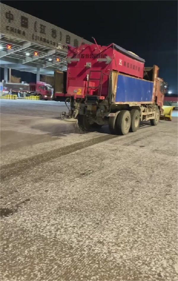12月24日傍晚,連云港東部和寧連高速灌云段出現(xiàn)降雪,公司以雪為令,組織人員、除雪車輛等設(shè)備迅速前往寧連高速公路和東疏港高速公路開展除雪防滑保暢工作。通過撒布車一夜多次撒布防滑料和融雪劑的作業(yè)方式,有效地保證了路面無結(jié)冰打滑現(xiàn)象。在本次除雪防滑保暢中,出動7臺撒布車,撒布融雪劑和防滑料70余噸,確保了管養(yǎng)道路的安全暢通。