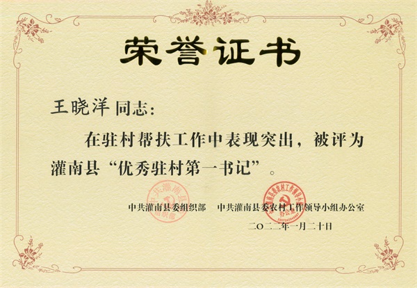近日,從中共灌南縣委農(nóng)村工作領(lǐng)導(dǎo)小組辦公室傳來喜訊,豐達(dá)公司王曉洋同志在灌南縣駐村幫扶工作中表現(xiàn)突出,被評為灌南縣“優(yōu)秀駐村第一書記”。