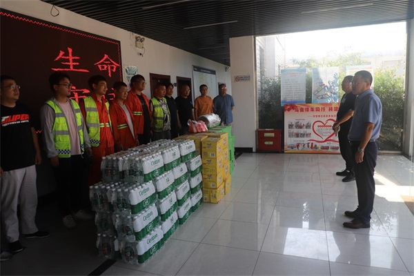 7月18日下午,豐達(dá)公司在家領(lǐng)導(dǎo)班子成員到權(quán)屬五家單位開(kāi)展了夏季安康“三送”活動(dòng)。總經(jīng)理王梁洲代表公司領(lǐng)導(dǎo)班子看望慰問(wèn)了在一線戰(zhàn)高溫、保暢通的廣大職工,為他們送上綠豆、涼茶等防暑降溫物品。每到一處,總經(jīng)理王梁洲與大家親切交談,感謝他們?yōu)楣景l(fā)展所付出的心血和汗水,并叮囑他們注意防暑降溫和安全生產(chǎn),實(shí)施高溫錯(cuò)時(shí)作業(yè),切實(shí)做好勞動(dòng)保護(hù)工作。同時(shí)要求各單位把防暑降溫工作落實(shí)到每個(gè)工地、班組和職工個(gè)人,把維護(hù)廣大職工安全和健康權(quán)益落到實(shí)處,盡力為職工營(yíng)造良好的工作環(huán)境。