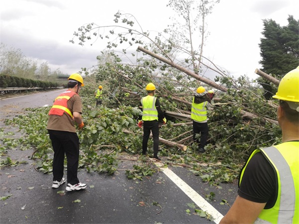 20日中午12時(shí),寧連高速公路南京方向K1716處受龍卷風(fēng)影響,造成路面兩側(cè)樹(shù)木倒伏120余棵,倒伏樹(shù)木阻斷了雙向交通,使交通受到影響。公司迅速啟動(dòng)應(yīng)急搶險(xiǎn)快速反應(yīng)機(jī)制,搶險(xiǎn)人員爭(zhēng)分奪秒利用油鋸對(duì)倒伏路樹(shù)分段鋸斷,對(duì)倒伏樹(shù)木進(jìn)行快速處理,經(jīng)過(guò)20分鐘的戰(zhàn)斗,先打通一條車道讓過(guò)往車輛先通行,后經(jīng)過(guò)3個(gè)小時(shí)的緊張工作,將路面上的倒伏樹(shù)木全部清理完成,及時(shí)地消除了道路安全隱患,保障了道路行車安全。