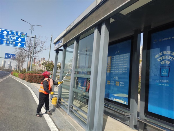 三是高要求做好環(huán)境衛(wèi)生管理工作。全力做好512座公交站亭、41.5對(duì)BRT站臺(tái)、10座公交場(chǎng)站、綜合客運(yùn)樞紐及東鹽河口袋公園等的現(xiàn)場(chǎng)管理工作,由于范圍廣、客流量大、保潔任務(wù)重公司進(jìn)行定人定崗劃分區(qū)域負(fù)責(zé)環(huán)境衛(wèi)生,持續(xù)做好美化公交站臺(tái)環(huán)境、清理場(chǎng)區(qū)衛(wèi)生死角等工作。同時(shí)加強(qiáng)對(duì)站臺(tái)場(chǎng)站的巡查,組織3組站臺(tái)維修小組和7組應(yīng)急處置小組機(jī)動(dòng)巡查及快速處理突發(fā)情況切實(shí)保障公交站臺(tái)及交通場(chǎng)站等的干凈整潔。