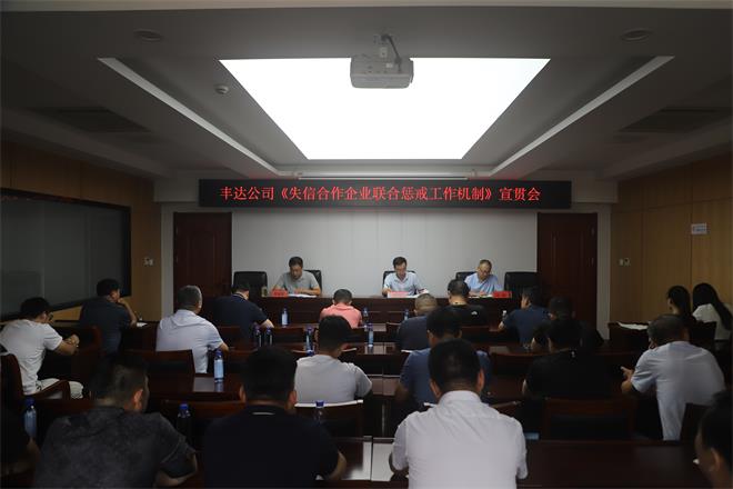 為了進一步強化廉潔風險防控,有效防止“圍獵”與“被圍獵”風險,塑優(yōu)營商環(huán)境,凈化政治生態(tài),8月4日上午,豐達公司組織召開《失信合作企業(yè)聯(lián)合懲戒工作機制(試行)》宣貫會。公司總經(jīng)理唐偉、工會主席李春堯、副總經(jīng)理馬軻出席會議并講話,豐達公司部門負責人、各分子公司經(jīng)理及公司合作單位負責人近三十人參加會議。