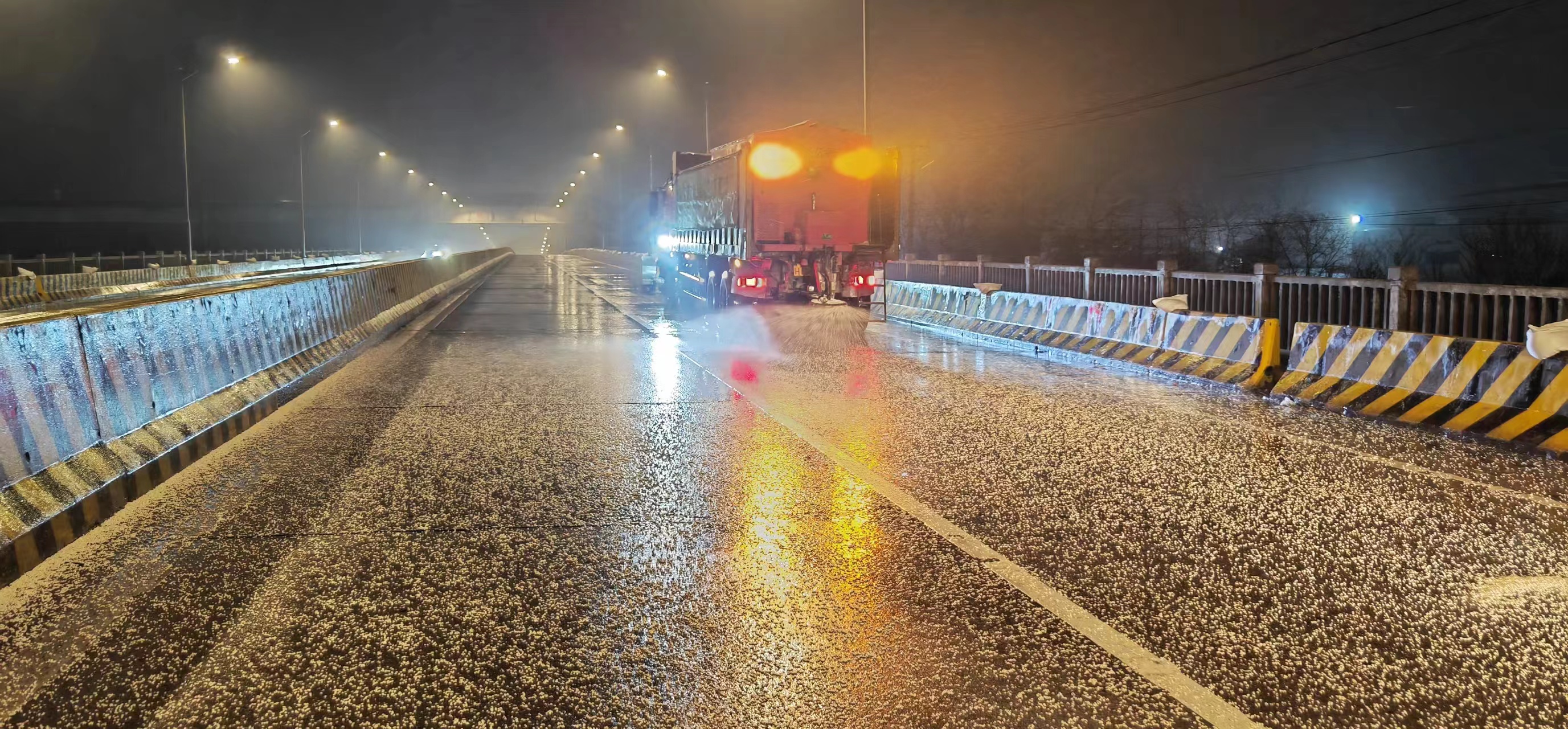 2024年1月31日傍晚,我市開始降雨降雪,根據(jù)市掃雪除冰指揮部辦公室和市公路事業(yè)發(fā)展中心的部署,豐達公司緊急啟動除雪防滑應(yīng)急預(yù)案,及時拋灑融雪劑和防滑料開展除雪防滑作業(yè)。特別對公司所管養(yǎng)新港城大道、G228、G310、S242等多條主要國省干線和東疏港高速公路等彎道、匝道、橋梁、陡坡等易結(jié)冰、易發(fā)生事故路段的積雪進行重點清除。同時,綜合客運樞紐對廣場的積雪進行了及時清理,確保進出站旅客的安全。