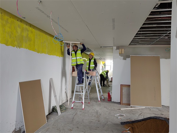 在集團辦公樓改造工程項目現(xiàn)場,為保證項目優(yōu)質(zhì)交付,施工人員依然奮戰(zhàn)在施工一線,項目已完成所有樓層墻體拆除、梁加固、給排水、空調(diào)室內(nèi)機安裝、消防系統(tǒng)、智能化系統(tǒng)、排風系統(tǒng)施工任務,內(nèi)裝水電、木工同步按序時進度進行。“假期期間,項目70多人依然加班加點在施工一線奮戰(zhàn),為保證按時保質(zhì)保量順利交工,大家齊心協(xié)力,相互配合,站好項目收官******一班崗?!表椖可a(chǎn)經(jīng)理楊明說。