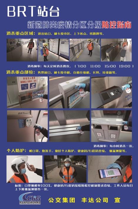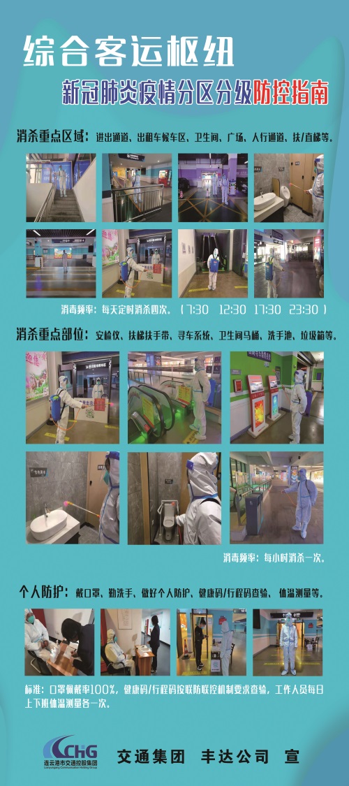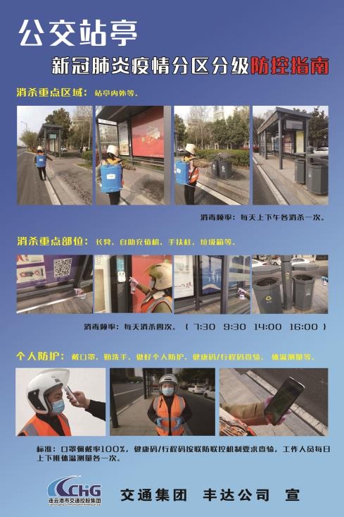 隨著連云港市高鐵站和公共客運交通逐步恢復(fù)運營,為進一步筑牢疫情防控防線,嚴(yán)密落實疫情防控措施,規(guī)范從業(yè)人員防控消殺操作規(guī)程,豐達公司根據(jù)不同物業(yè)管理項目的實際情況,分別制作了綜合客運樞紐、BRT站臺及普通公交站亭《新冠肺炎疫情分區(qū)分級防控指南》展板和海報共計百余張,指南明確了重點區(qū)域消殺時間、重點部位消殺頻率及個人防護要求。同時公司迅速組織各物管項目從業(yè)人員針對防控指南內(nèi)容進行培訓(xùn)教育,通過培訓(xùn)進一步提高了從業(yè)人員防范意識,規(guī)范了操作流程,為物管項目疫情防控常態(tài)化提供了保障。