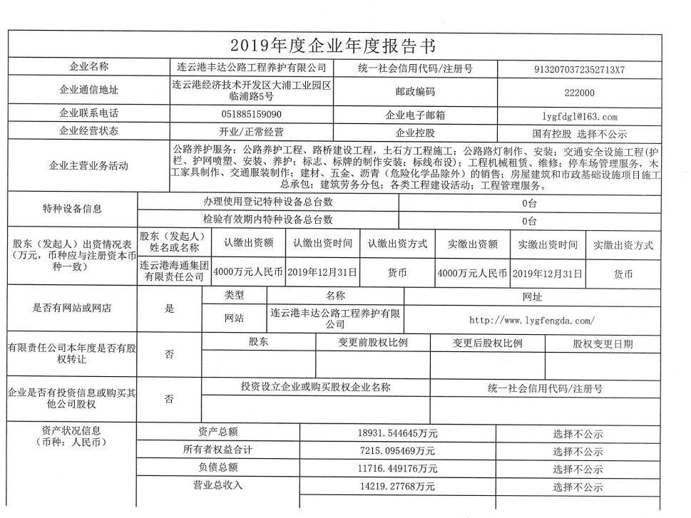 2019年度企業(yè)年度報告書