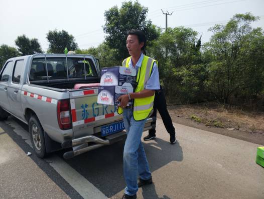 為保障職工安康權(quán)益,促進(jìn)企業(yè)安全發(fā)展,7月25日,豐達(dá)路橋工程分公司組織人員,帶上飲料、礦泉水、綠豆、藥品等防暑降溫物品,慰問在G228工程施工的全體工作人員,為烈日下一線職工們送上一份清涼。