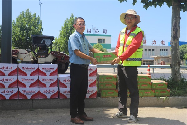 活動中,豐達(dá)公司領(lǐng)導(dǎo)班子深入一線,看望慰問在一線戰(zhàn)高溫、保暢通的廣大職工,為他們送去礦泉水、飲料等防暑降溫物品,將公司的關(guān)懷送到一線職工的手里、心上。走訪慰問過程中,黨總支書記、董事長王梁洲與一線職工親切交談,叮囑他們注意防暑降溫和安全生產(chǎn),實施高溫錯時作業(yè),切實做好勞動保護工作,同時要求各單位把防暑降溫工作落實到每個工地、班組和職工個人,把維護廣大職工安全和健康權(quán)益落到實處,盡力為職工營造良好的工作環(huán)境。